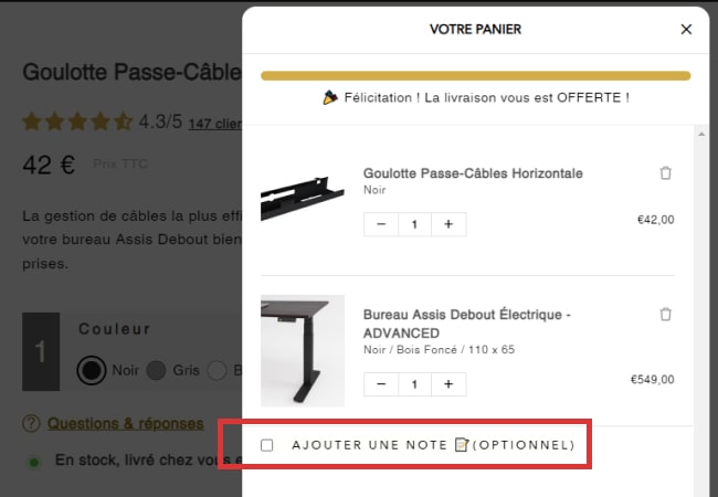 La demande de reprise doit être faite dans le commentaire au moment de finaliser l’achat du produit.
