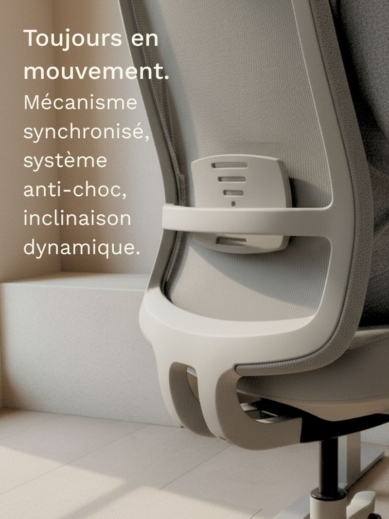 Le modèle LUNO se distingue par son design contemporain et sa fonctionnalité intuitive. Il est équipé d’un dossier en maille noire ultra-résistante, conçu pour offrir un soutien optimal sans se déformer, même après un usage intensif. Son mécanisme synchronisé avec auto-ajustement de l’inclinaison assure un confort instantané, sans réglage complexe.