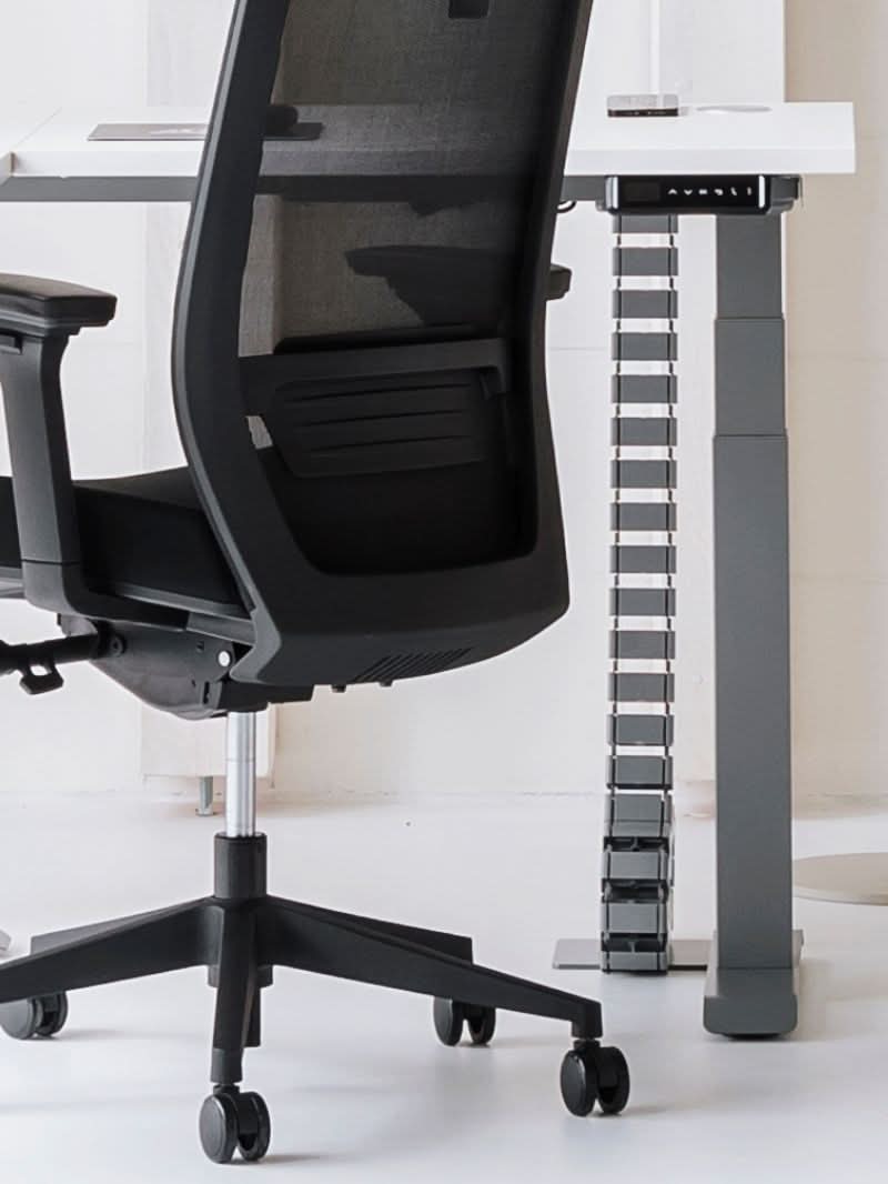 La goulotte passe-câbles verticale est disponible en trois coloris universels : Blanc (RAL9010), Noir (RAL9005) et Gris (RAL9006), afin de s’harmoniser parfaitement avec votre bureau.