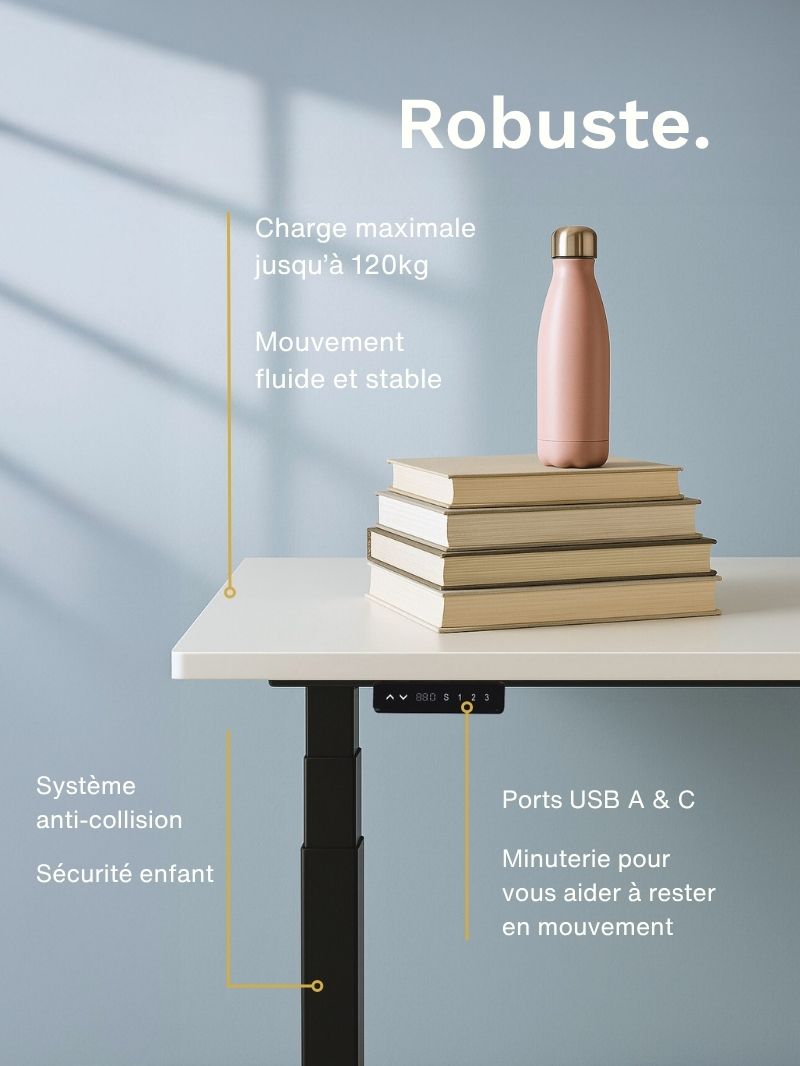 Console de commande : Ecran LCD / 3 hauteurs mémorisables / 1 port USB A / 1 port USB C